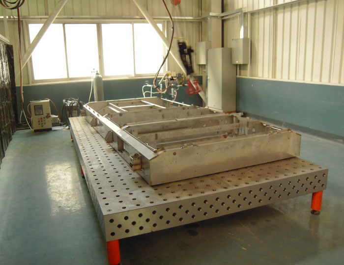 简介:为广州中车提供的三维柔性焊接工装的主要特点就是从平台到附件都是标准孔没有传统的螺纹或t型槽,配合快速锁销就能使装配变得加快捷方便,定位精确。